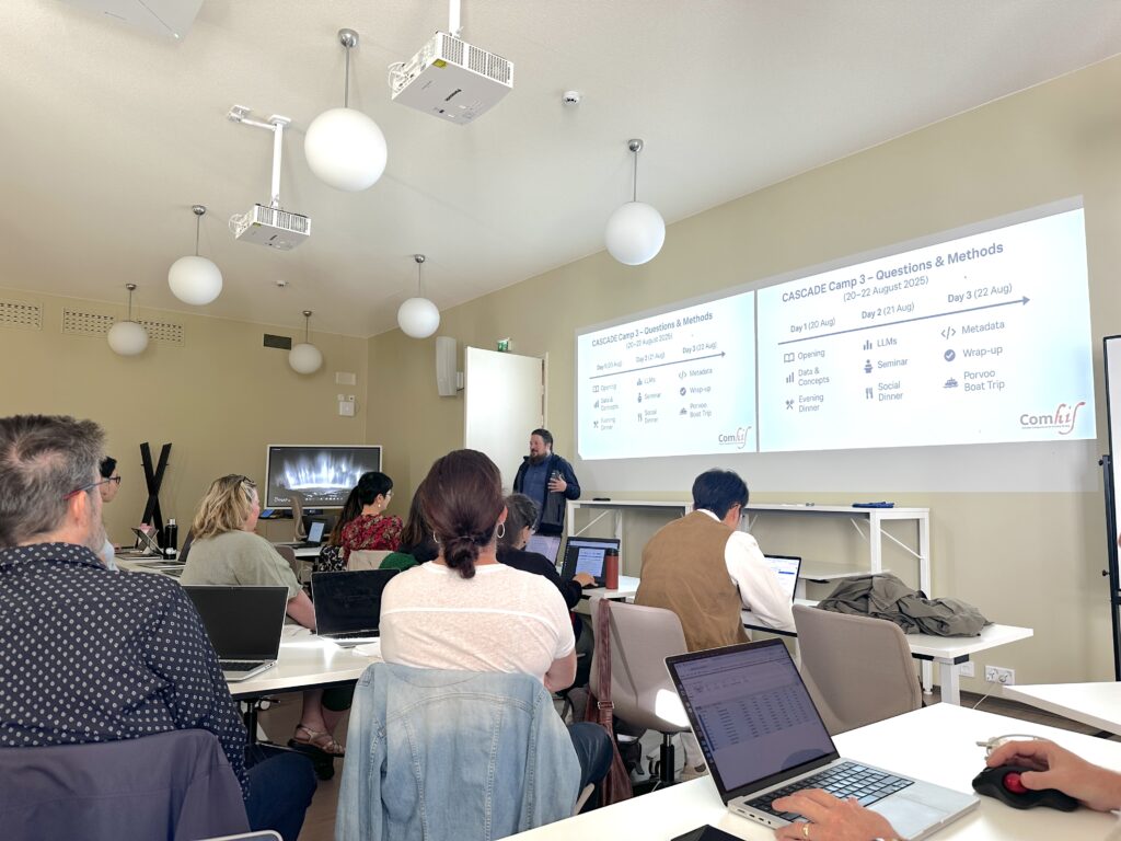 Objectives: To strengthen ESRs’ understanding of the interplay between research questions, data, and methods. To expose participants to diverse perspectives through collaboration with experts from King’s College London, the University of Turku, and the University of Helsinki Computational History Group. To facilitate exchange between CASCADE ESRs and Helsinki-based digital history doctoral students. To provide practical, hands-on training in data analysis, language modelling, and conceptual history. To build cohort cohesion through shared academic and social activities.